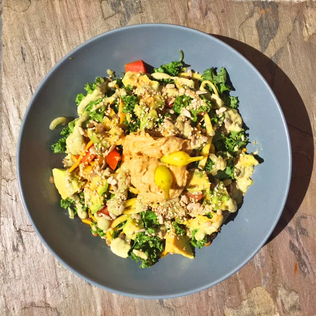 One of our favorites is this vegan, cashew-based dressing that's enriched with creamy, stone ground tahini that adds an extra pinch of earthy flavor. It keeps pretty well in the fridge, for about two weeks, however, you might have to add some extra water when you want to use it as it thickens up.